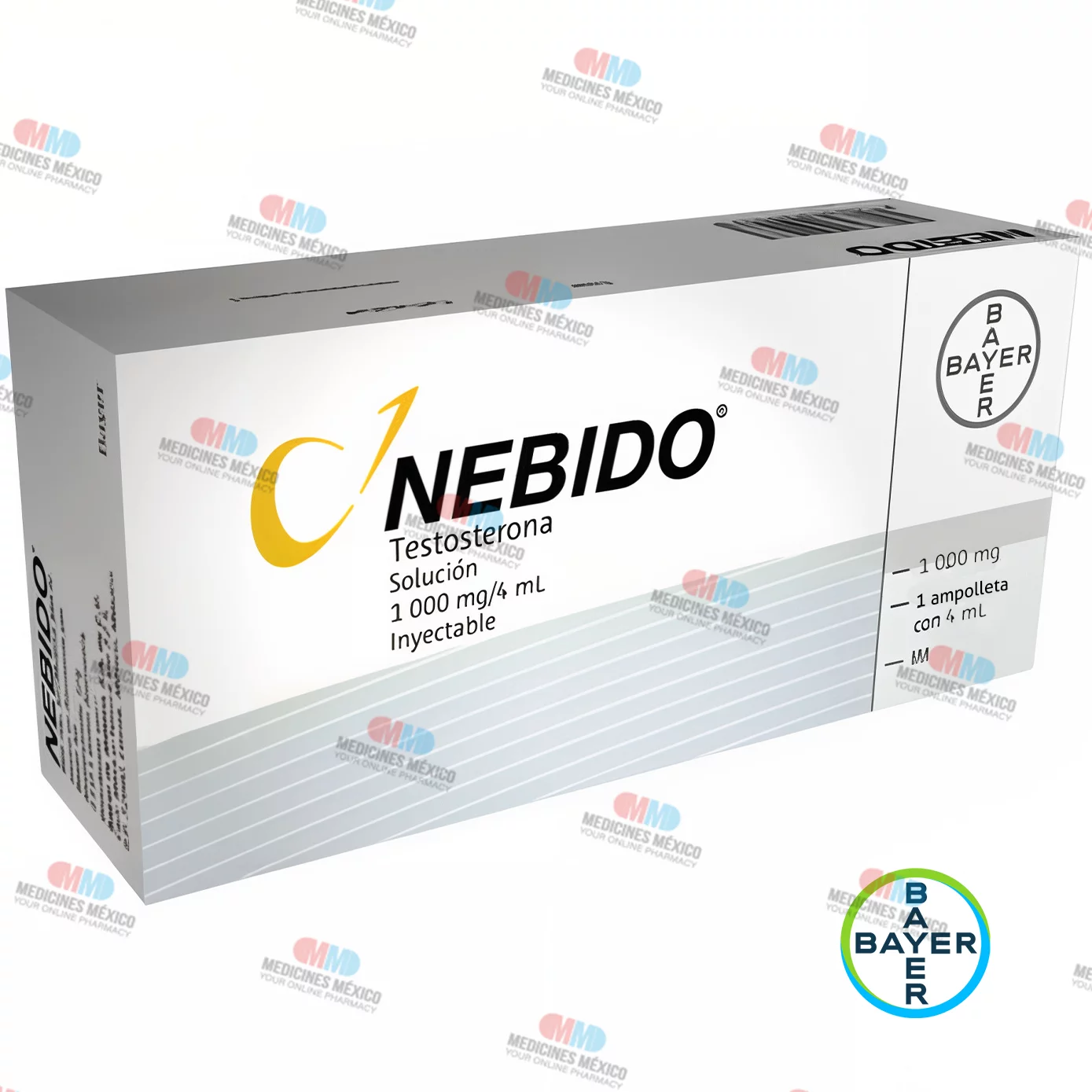 Please consult your physician before taking any medication. Formulation and Dosage Form Each vial contains: 1,000 mg testosterone undecanoate (250 mg testosterone undecanoate / ml) Vehicle c.b.p. 4 ml. Dosage and administration NEBIDO ® (light bulb up to 1000 mg testosterone undecanoate) is injected every 10 to 14 weeks. Injections given this often help maintain sufficient levels of testosterone without causing buildup. The injections should be administered slowly. NEBIDO ® are strictly administered by intramuscular injection. Special attention should be paid to avoid intravascular injection. Start of treatment: serum testosterone levels should be measured before starting treatment. The first injection interval can be reduced to a minimum of 6 weeks. With this loading dose levels at steady state is reached quickly. Individualization of treatment: It is advisable to measure serum testosterone levels, occasionally, at the end of the interval between injections. Levels below the normal range serum levels indicate the need to shorten the interval between injections. In case of high serum levels shall be considered to extend the interval between injections. The interval between injections will remain within the recommended range of 10 to 14 weeks. INDICATIONS: Testosterone replacement in primary and secondary male hypogonadism. Pharmacokinetics: Pharmacodynamic Properties Pharmacotherapeutic group: Androgen-oxoandrosteno derivative 2. Testosterone undecanoate is an ester of the natural androgen testosterone. The active, testosterone, is formed by cleavage of the side chain. Testosterone is the more important androgen in men, and is mainly synthesized in the testes and, to a lesser extent in the adrenal cortex. Testosterone is responsible for the expression of male characters during fetal development, early childhood and puberty; subsequently maintaining the male phenotype and functions of androgen dependent (eg, spermatogenesis, accessory sex glands). It also acts, for example in skin, muscle, skeleton, kidney, liver, bone marrow and CNS. Insufficient secretion of testosterone produces male hypogonadism, characterized by low serum testosterone concentrations. Symptoms associated with male hypogonadism include, among others, impotence and decreased libido, fatigue and depressed mood, plus absence, incomplete development or regression of secondary sexual characteristics, increased risk of osteoporosis, increased visceral fat and loss of muscle mass and strength. Exogenous androgens are given to improve the deficient endogenous testosterone levels and symptoms related to these. Depending on the target organ, the spectrum of activities of testosterone is primarily androgen (eg, prostate, seminal vesicles, epididymis) or anabolic protein (muscle, bone, hematopoietic, kidney, liver). The effects of testosterone on organs arising after conversion peripheral estradiol, which binds to estrogen receptors in the nucleus of target cells, for example, pituitary, fat, brain, bone, and testicular Leydig cells. In hypogonadal men, androgens decrease body fat mass, increasing lean body mass, muscle strength and prevent bone loss. Androgens may improve sexual function and also have positive psychotropic effects to enhance the mood. Pharmacokinetics Absorption Nebido® a depot preparation testosterone undecanoate intramuscularly administered and, therefore, avoid first pass effect. After intramuscular injection of testosterone undecanoate in oil solution, the compound is released gradually from the depot and is almost entirely metabolized by esterases in the serum testosterone and undecanoic acid. Increased serum levels of testosterone above the baseline and can be measured one day after administration. Distribution: In two separate studies, overall mean concentrations of 24 and 45 nmol / L testosterone about 14 and 7 days, respectively, were determined following single administration im 1,000 mg of testosterone undecanoate to hypogonadal men. The posmáximos decreased testosterone levels estimated half-life of about 53 days. In the serum of men, approximately 98% of circulating testosterone is bound to SHBG and albumin. Only considered biologically active free fraction of testosterone. After intravenous infusion of testosterone to elderly men, apparent volume of distribution of approximately 1.0 L / kg was determined. Metabolism testosterone formed by cleavage of the ester is testosterone undecanoate metabolized and excreted in the same way as the endogenous testosterone. Undecanoic acid is metabolized by beta-oxidation in the same way that other aliphatic carboxylic acids. Elimination Testosterone undergoes extensive hepatic and extrahepatic metabolism. Following administration of radiolabeled testosterone, about 90% of the radioactivity appears in urine as glucuronic acid conjugates and sulfuric acid, and 6% in feces is detected after the enterohepatic circulation. Urinary androsterone and etiocholanolone products include. Steady-state conditions: After repeated im injection 1,000 mg of testosterone undecanoate to hypogonadal men using a 10-week interval between two injections, steady state conditions were reached between the third and the fifth administration. Mean Cmax and Cmin. testosterone at steady state were about 42 and 17 nmol / L, respectively. Testosterone levels in serum posmáximos decreased with a half life of about 90 days, which corresponds to the rate of release from the reservoir.